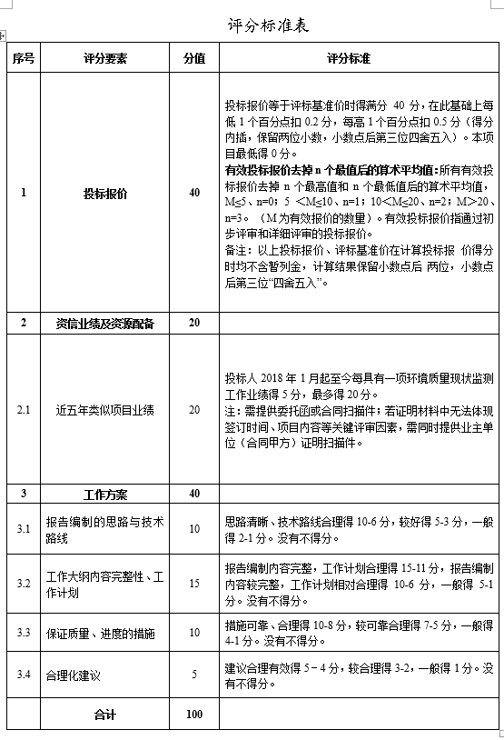 本項目在供應商滿足資格要求的前提下依據(jù)業(yè)績、資信、報價等方面進行綜合評選,詳見評分標準表。本項目最高限價為4萬元。