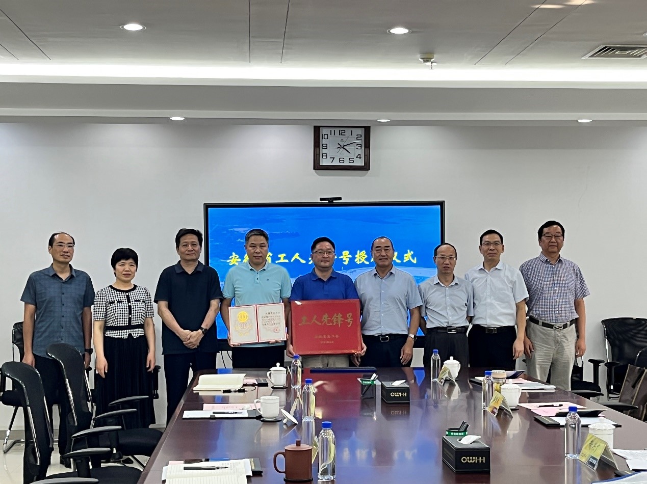 日前,公司工程勘測院被安徽省總工會授予“安徽省工人先鋒號”榮譽稱號。9月7日,安徽省工人先鋒號授牌儀式在公司舉行。淮河工會主席謝興廣出席并講話,安徽省農林水利氣象工會主席孫國平為工程勘測院授牌,省農林水利氣象工會黨支部書記王懷宇宣讀表彰決定并頒發榮譽證書,公司董事長伍宛生出席活動并致辭,淮河工會副主席王世民主持授牌儀式。