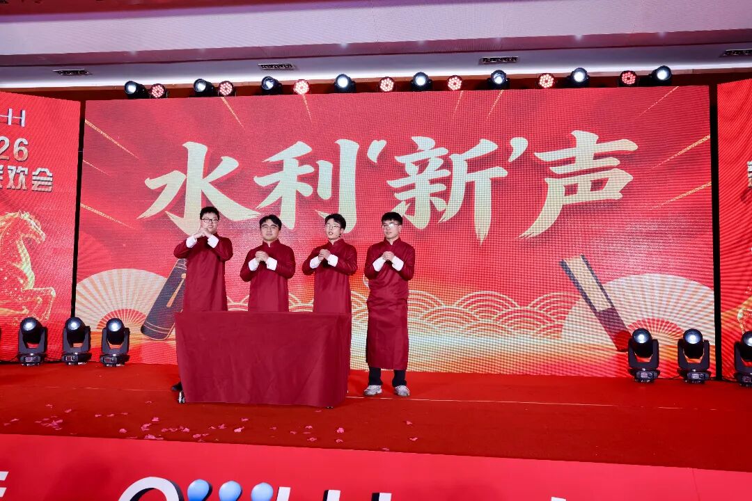 文藝匯演在喜氣洋洋的舞獅表演中拉開序幕,由公司員工自導(dǎo)自演的21個精彩節(jié)目接連呈現(xiàn),現(xiàn)場掌聲歡呼聲連綿不絕。舞蹈表演《千里江山圖》讓青綠山水在舞臺上靈動鋪展,讓千年文脈隨韻律流淌;《旗開得勝》伴隨著激昂的鼓點(diǎn),如千軍踏陣綻放勝利榮耀。小品《中水天團(tuán)》、《為你而來》等以趣味反差的手法展現(xiàn)中水淮河公司全體員工專業(yè)至上、實(shí)干擔(dān)當(dāng)?shù)墓ぷ髯黠L(fēng),贏得全場歡笑與掌聲。大合唱《擼起袖子加油干》展現(xiàn)新員工的朝氣蓬勃和奮斗精神。公司領(lǐng)導(dǎo)班子壓軸表演的朗誦《長淮千里風(fēng)正勁,策馬揚(yáng)鞭再向前》回顧2025公司輝煌成就,將匯演氣氛推向頂點(diǎn)。
