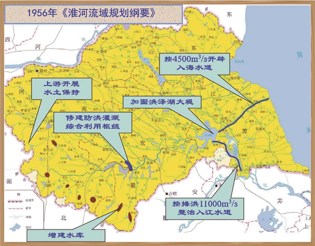 1954年洪水,淮河中游淮北大堤部分漫決,暴露出治淮初期的防洪標(biāo)準(zhǔn)偏低等問題。為了提高淮河治理標(biāo)準(zhǔn),綜合利用淮河水資源,治淮委員會勘測設(shè)計院會同豫、皖、蘇三省水利部門、國家有關(guān)部委,在蘇聯(lián)水利專家指導(dǎo)下第一次全面、科學(xué)地編制了包括防洪、除澇 、 灌溉 、 航運 、 水力發(fā)電 、漁業(yè)生產(chǎn)、城市工業(yè)供水等水資源綜合開發(fā)利用的總體發(fā)展工程規(guī)劃 —《淮河流域規(guī)劃報告》。在本次流域規(guī)劃的指導(dǎo)下,建成了宿鴨湖 、 磨子潭等10座大型水庫,完成了蚌埠閘工程、江都水利樞紐(我國規(guī)模最大的電力排灌工程、亞洲最大的泵站樞紐,也是南水北調(diào)東線的起點)。