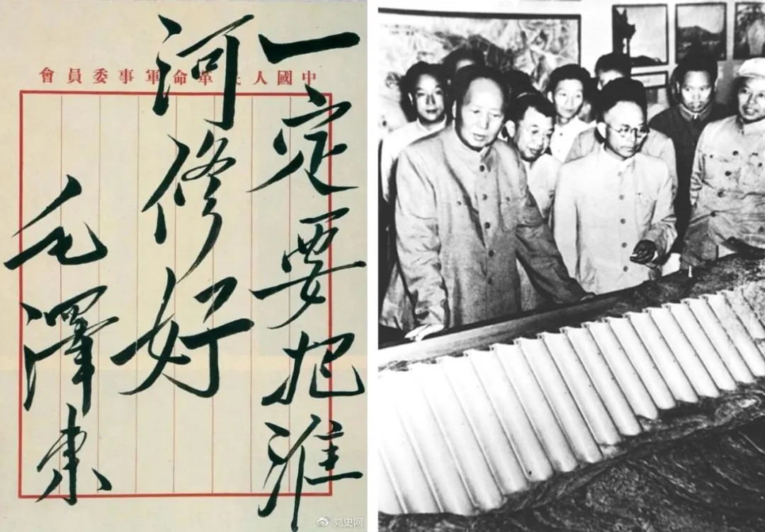 歷史上的這里,由于缺乏有效治理,河道淤積,旱澇災害頻發(fā)。1950年夏季,淮河流域連降暴雨,雨水匯聚成滾滾洪流,摧毀房屋,淹沒農田,“數(shù)百里的河堤全部失去作用”。1950年5月,淮河水利工程總局對史河、灌河進行了查勘,提出上游建梅山水庫的意見。1951年毛澤東主席發(fā)出號召“一定要把淮河修好”,同年4月,第二次治淮會議決議的《治淮方略》和1952年度工程要點,確定興建史河梅山水庫。