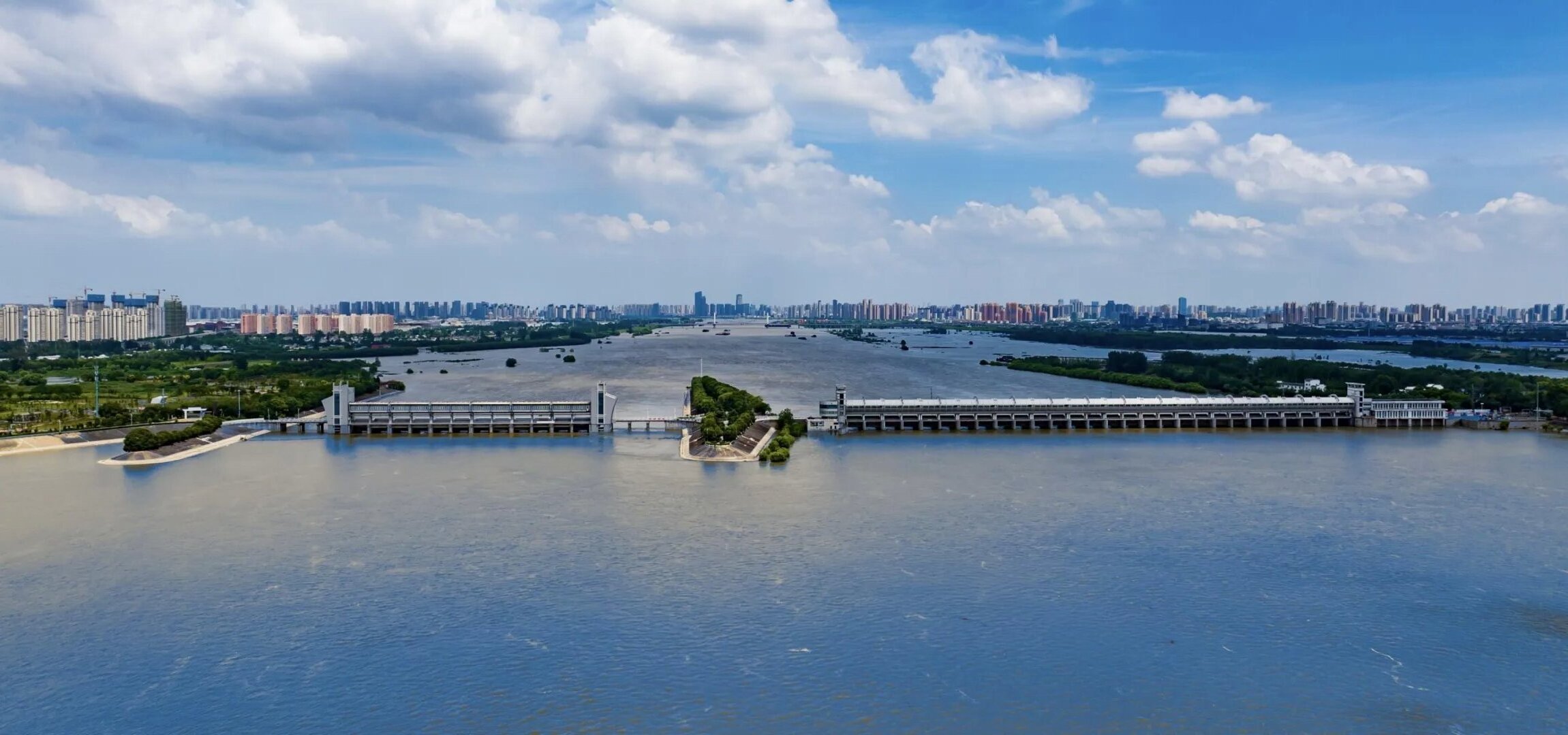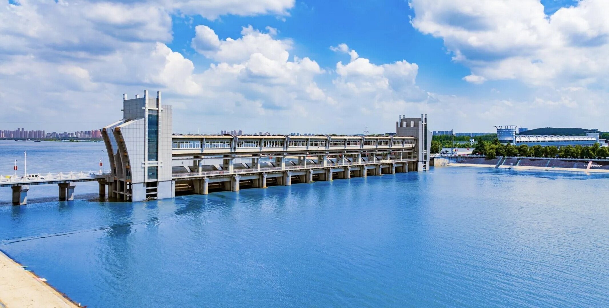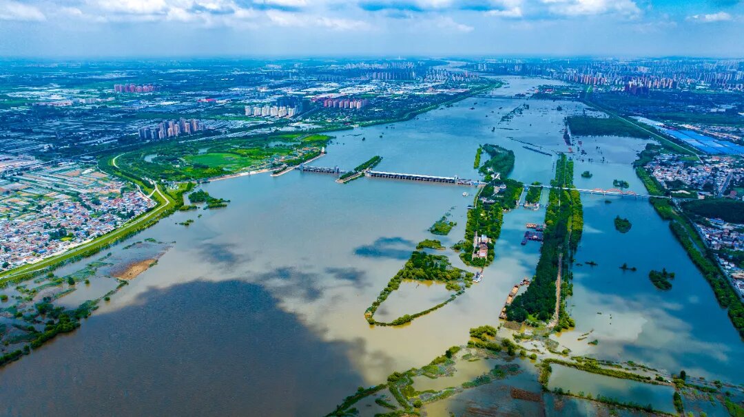 蚌埠閘位于淮河中游,橫跨安徽省蚌埠市禹會與淮上兩區,閘上流域面積12.1萬平方公里,是一座大(1)型水利樞紐工程。工程始建于1958年,1962年基本建成,經60多年的不斷建設和發展,現由28孔節制閘、12孔節制閘、老船閘、擴建船閘、水力發電站、分洪道、3.37km堤防組成,具有防洪、蓄水灌溉、航運、發電、城市供水等綜合效益。樞紐工程設計洪水位閘上23.22m,閘下23.10m,設計流量13090m3/s。