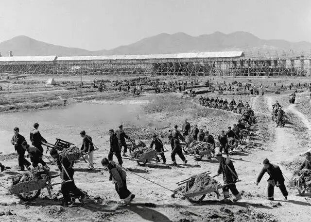 1958年1月15日,治淮委員會向水電部報送《淮河蚌埠閘設計任務書》。同年3月12日,水電部批復同意,蚌埠閘開始興建。當時正值國家面臨緊急困難時期,糧食、建材極為緊缺。在艱苦卓絕的條件下,治淮先輩們用小推車運料,肩扛背馱水泥鋼材,以血汗鑄就了蚌埠閘。